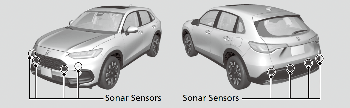 The sonar sensors are situated in the front and rear bumpers, and the front grille.