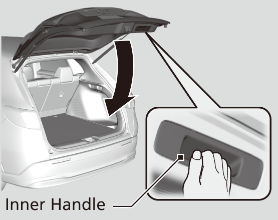 All modelsTo close the tailgate, grab the inner handle, pull the tailgate down, and push it closed from outside.