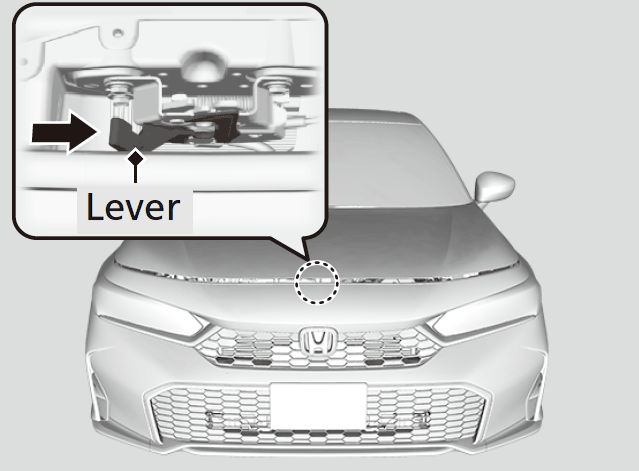 When closing the hood, check that the hood is securely latched.If the hood latch lever moves stiffly, or if you can open the hood without lifting the lever, the latch mechanism should be cleaned and lubricated.Do not open the hood while the Auto Idle Stop* function is activated.