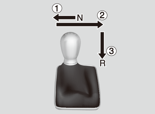 - Depress the clutch pedal, move the shift lever all the way to the left, and shift to R.