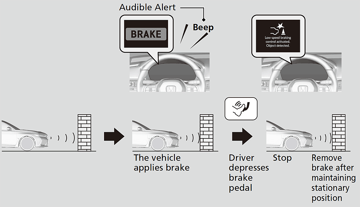 After Low Speed Braking Control has activated once, it will not activate again for the same obstacle.