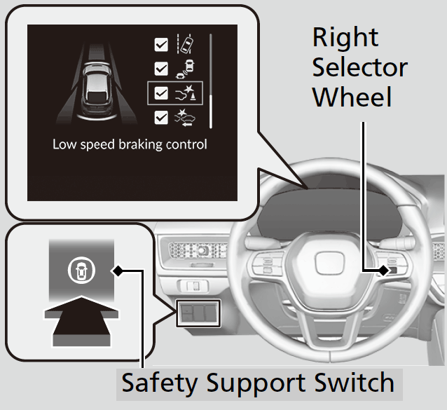 They can be activated again after driving for a certain distance after last activation.Low Speed Braking Control activates separately when moving forward and reversing. (For example, if it activates when moving forward, it can be activated again immediately if reversing.)