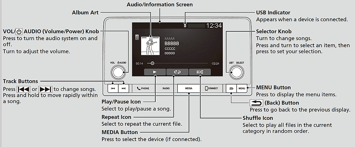 Available operating functions vary on models or versions. Some functions may not be available on the vehicle's audio system.