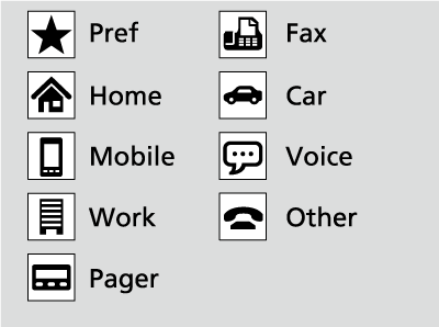 When you select a person from the list in the cellular phonebook, you can see up to five category icons. The icons indicate what types of numbers are stored for that name.