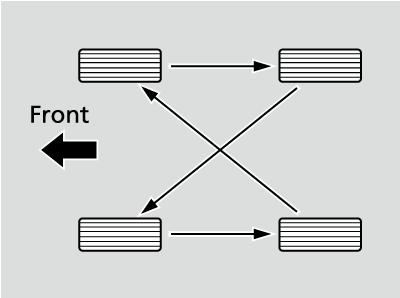 Rotate the tires as shown here.