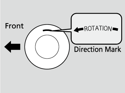 Directional tires should be mounted with the rotation indication mark facing forward, as shown below.