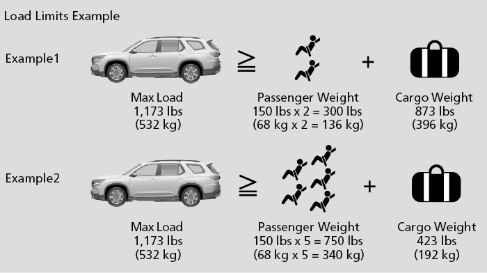 Determine the combined weight of luggage and cargo being loaded on the vehicle. That weight may not safely exceed the available cargo and luggage load capacity calculated in step 4.