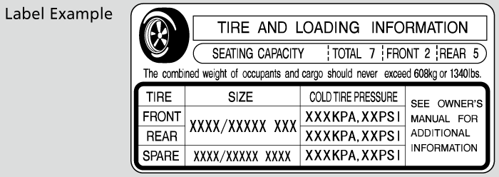 See the Tire and Loading Information label attached to the driver’s doorjamb.