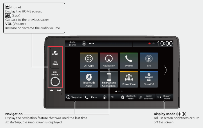 The system displays various functions from the HOME screen. Press the (Home) button at any time to return to the main HOME screen.
