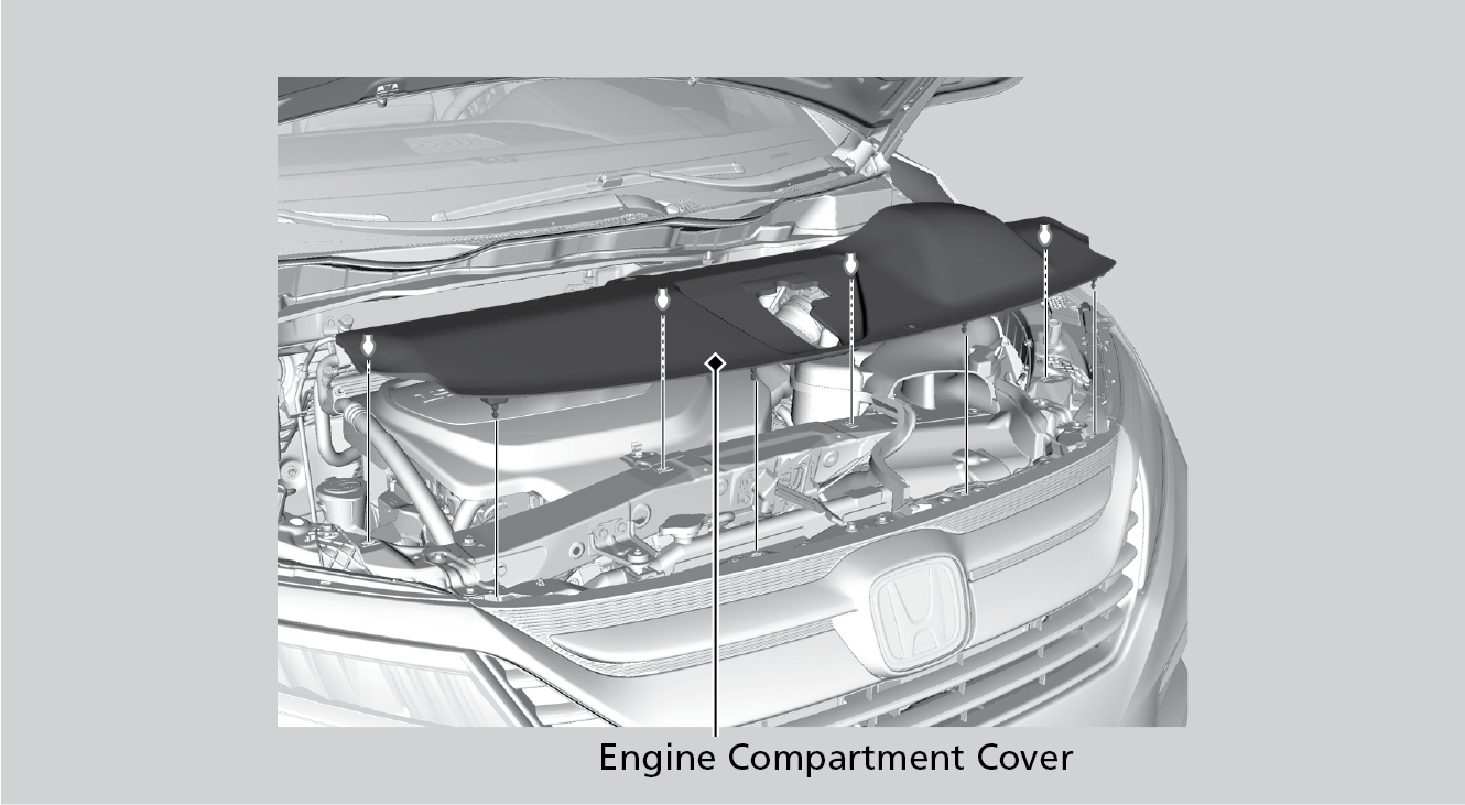 The component parts in the engine compartment are protected by a cover. You may need to remove the cover when you perform certain maintenance work.
