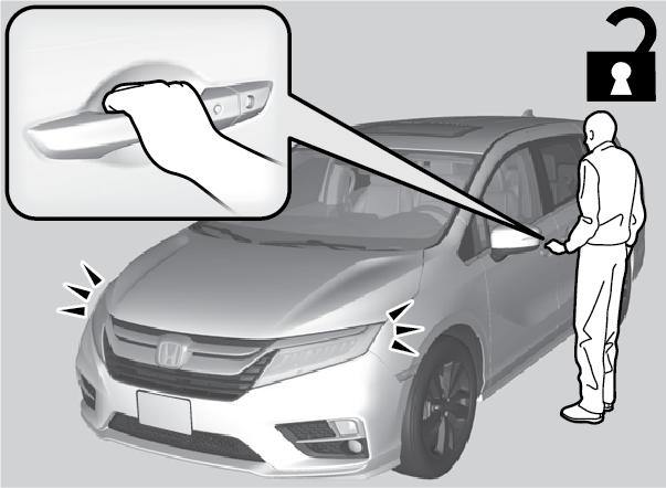 Grab the driver’s door handle to unlock the driver’s door. Grab the front passenger’s door handle