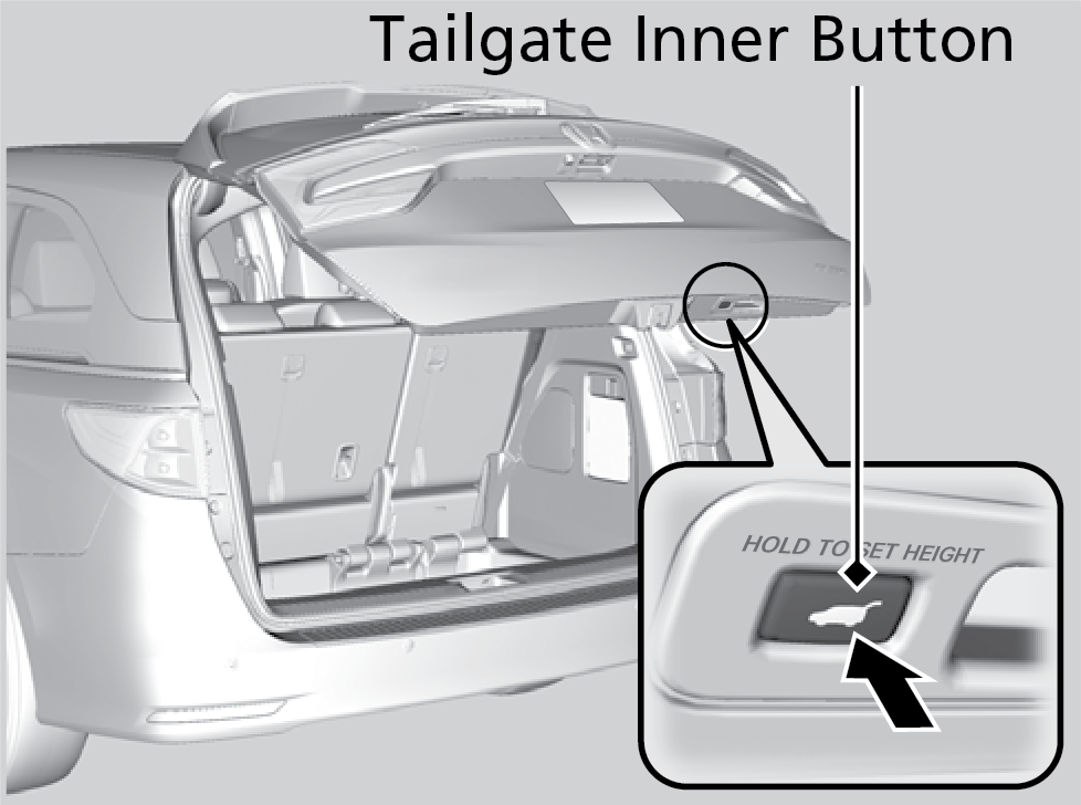 Press and hold the tailgate inner button until you hear one long and two short beeps.