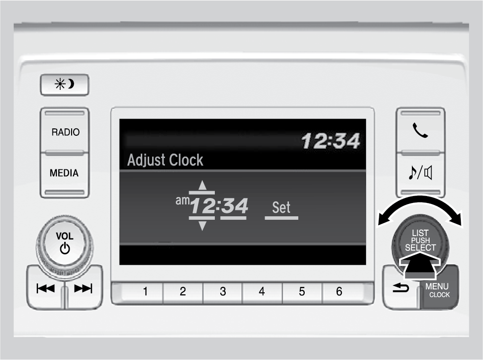 On vehicles without navigation and if the Automatic Date & Time feature has been turned off, use the following steps to adjust the time in the clock display.