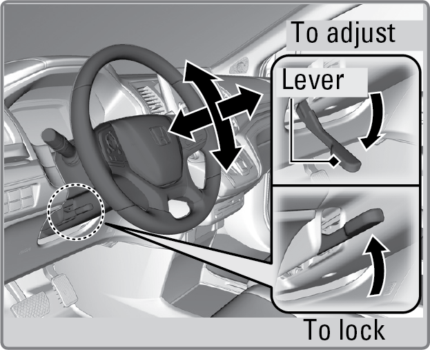 - Move the steering wheel up, down, in, or out.