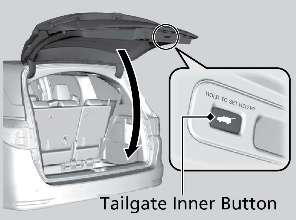 If you press the button again while the power tailgate is moving, it will stop. Press and release the button again, and the power tailgate will reverse direction.