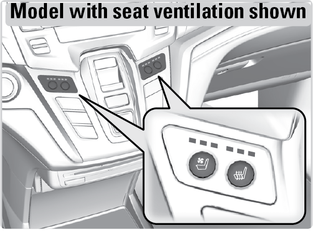 Press the seat heater *1 or the seat ventilation*1 button to cycle through settings. The appropriate indicator (red for heat, blue for ventilation) appears for each setting.
