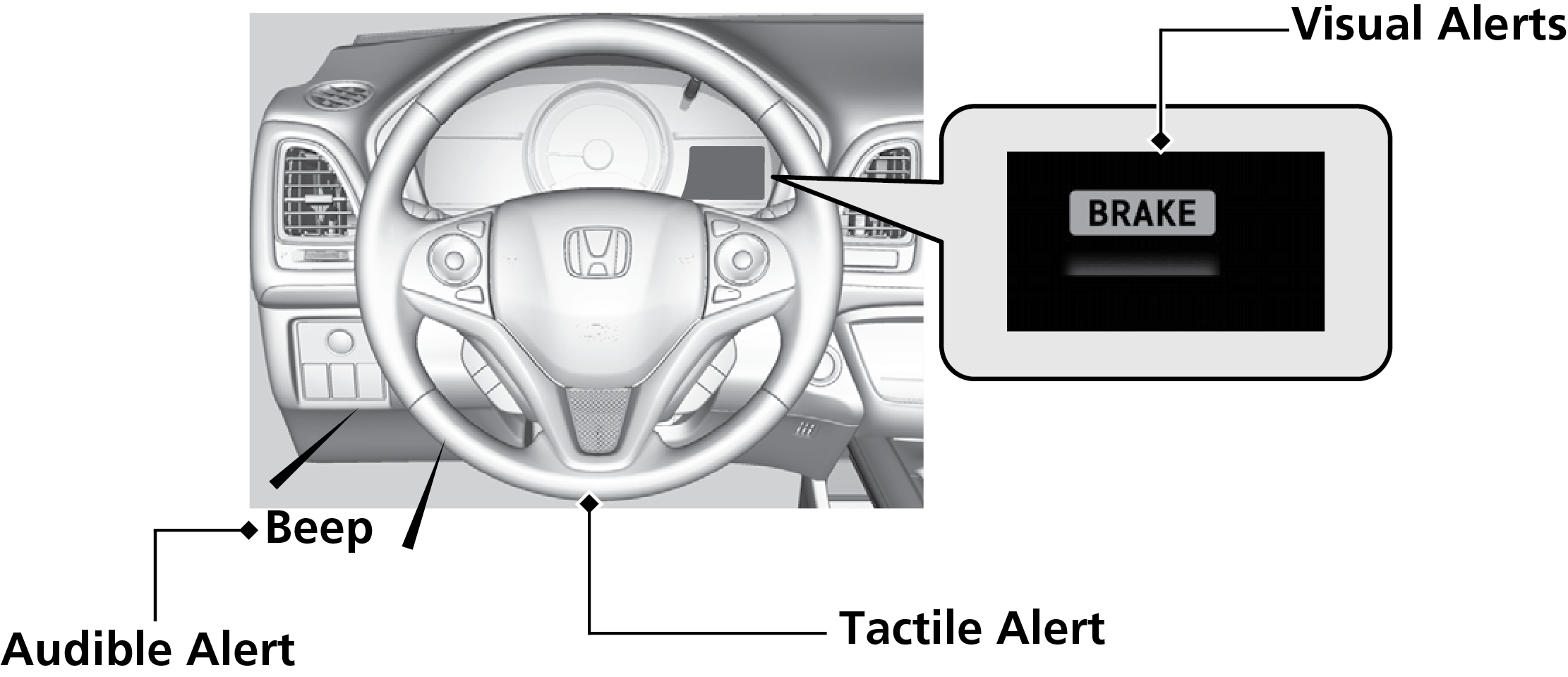 The system can give you visual, audible, and tactile alerts when a potential collision is determined, and reduce your vehicle speed to help minimize collision severity when a collision is deemed unavoidable.