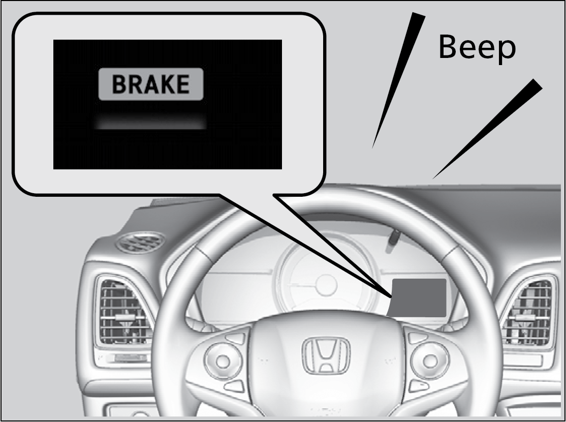 If a vehicle detected ahead of you slows down abruptly, or if another vehicle cuts in front of you, a beep sounds and BRAKE appears on the