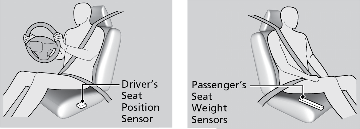 The driver's advanced airbag system includes a seat position sensor. Based on information from this sensor and the severity of the impact, the advanced airbag system determines the optimal deployment of the driver's airbag.