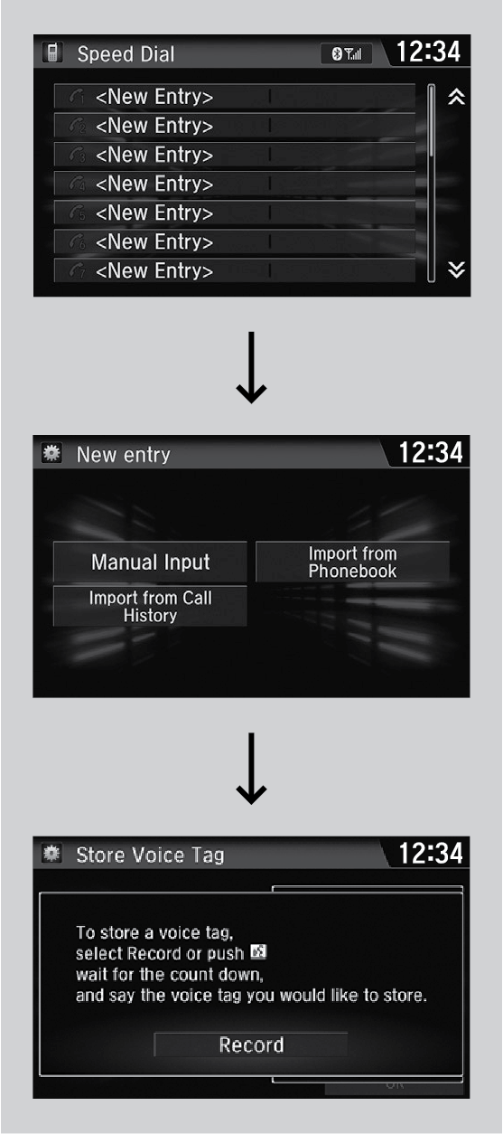 - Select Record, or use the Talk button and follow the prompts to complete the voice tag.