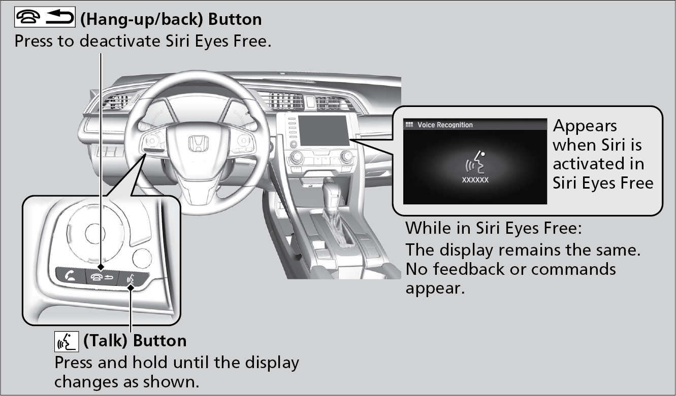 You can talk to Siri using the Talk button on the steering wheel when your iPhone® is paired to the Bluetooth® HandsFreeLink®.