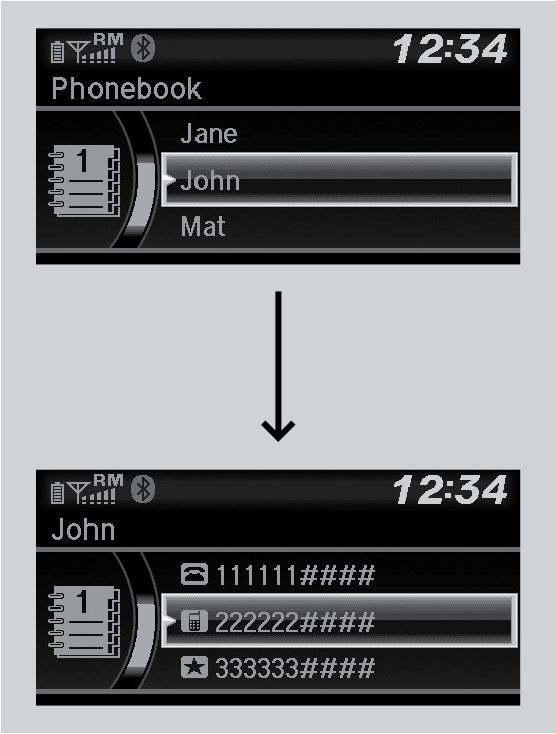 When your phone is paired, its phonebook is automatically imported to the system.