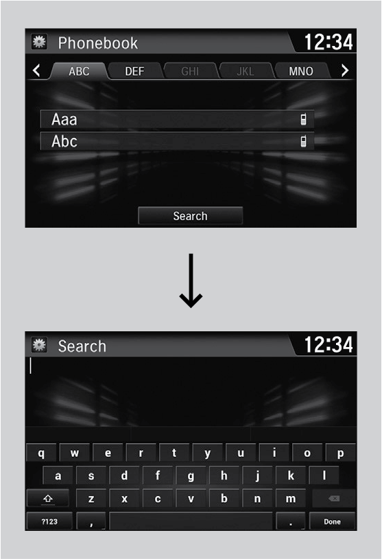 Use the keyboard on the touch screen for entering name, if multiple numbers exist select a number.