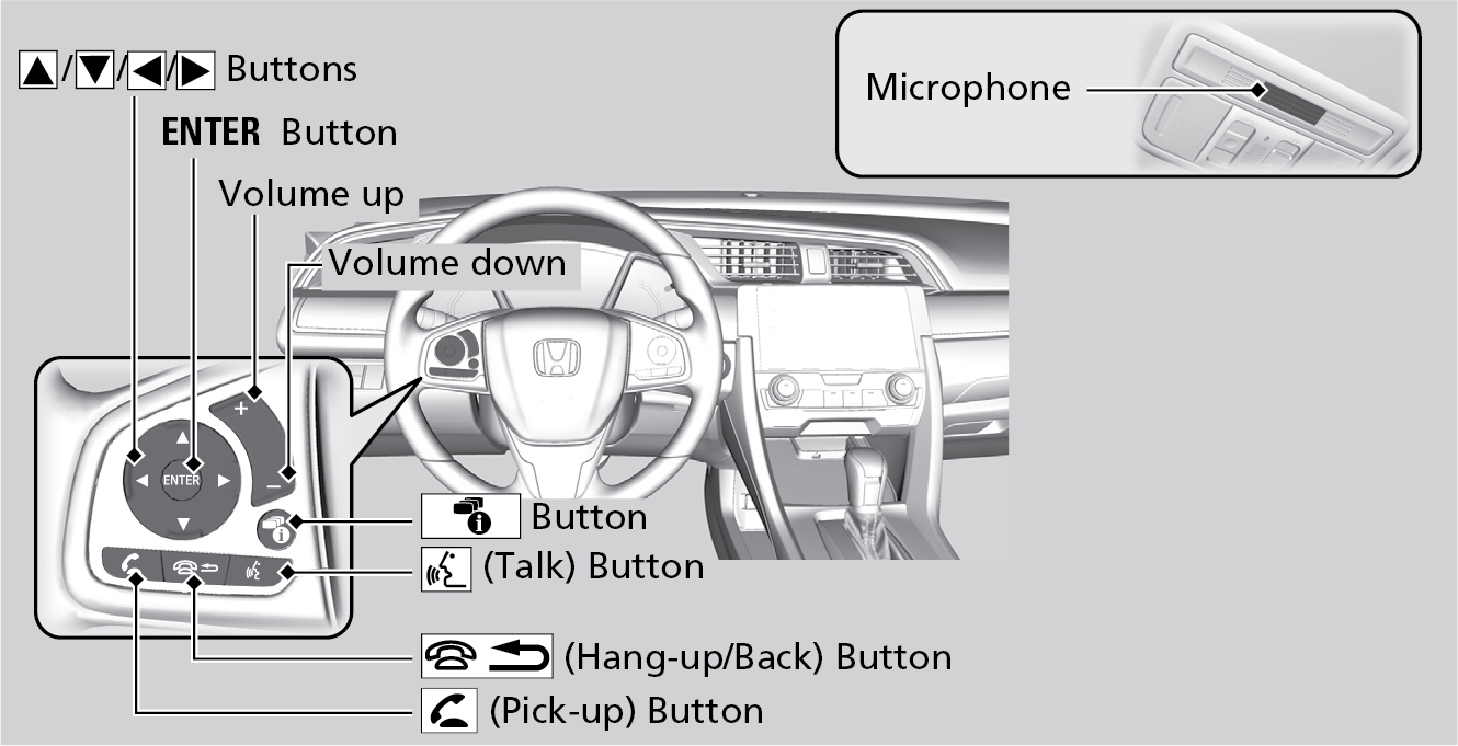 | Up/Down buttons: | Press to select an item displayed on the phone menu in the Driver Information Interface. |