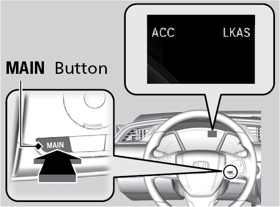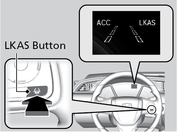 driver information interface. Dotted lane lines turn solid when the system activates.