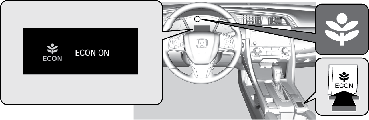 The ECON button turns the ECON mode on and off. The ECON mode helps you improve your fuel economy by adjusting the performance of the