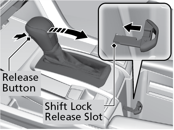 - Insert the key into the shift lock release slot.