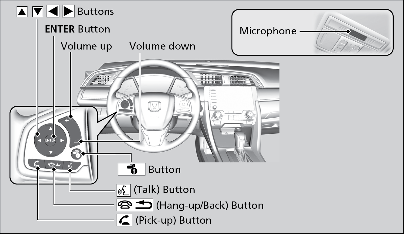 | Up/Down buttons: | Press to select an item displayed on the phone menu in the Driver Information Interface. |