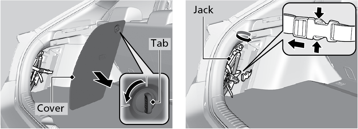 cargo area. Turn the jack's end bracket to loosen it, then remove it.