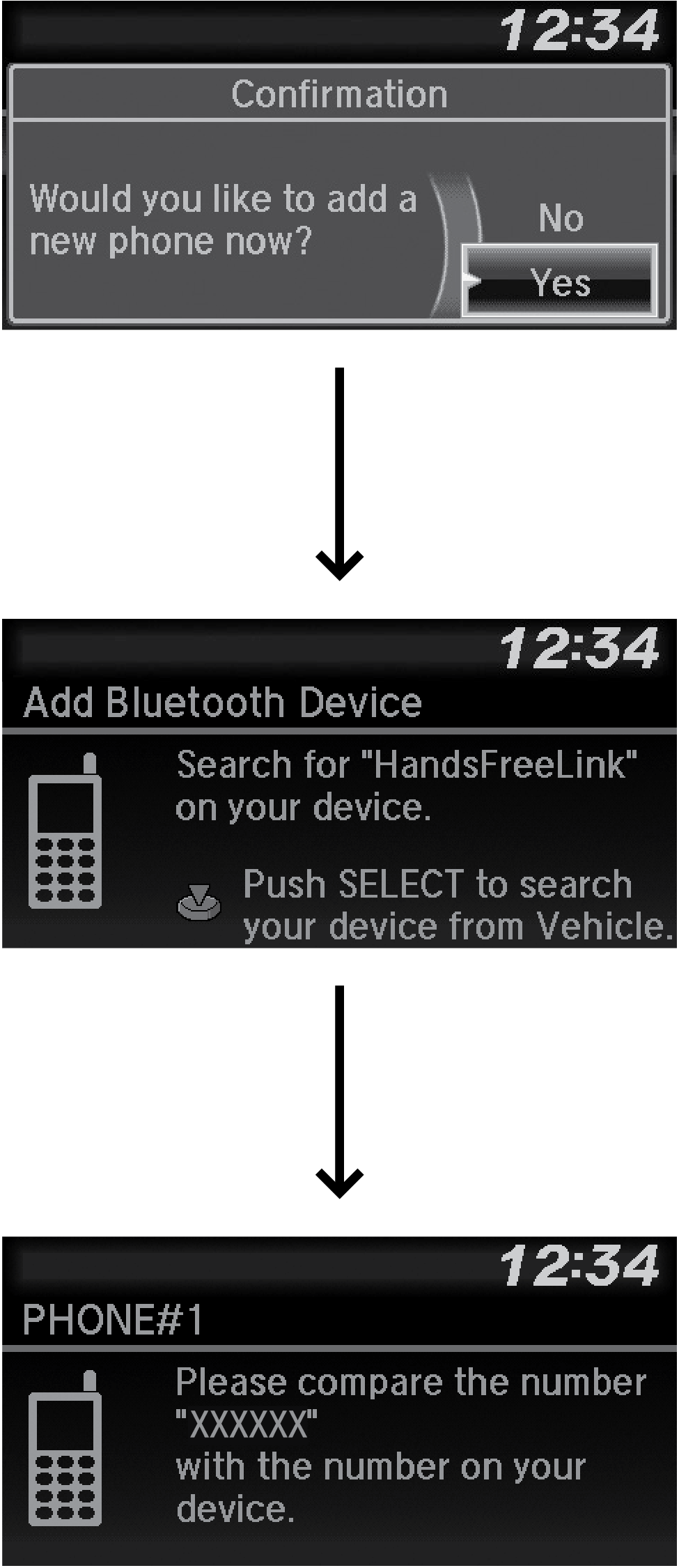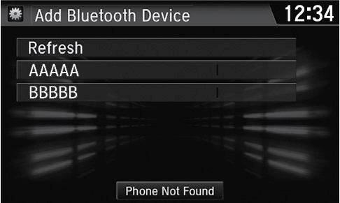 If your phone still does not appear, select Phone Not Found and search for Bluetooth® devices using your phone. From your phone, search for HandsFreeLink®.