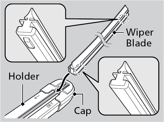 - Install the end of the wiper blade into the end cap.
