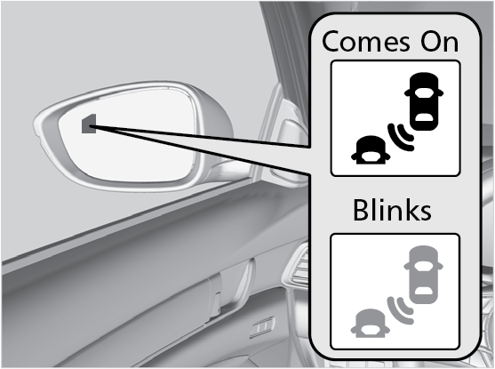 20 mph (32 km/h) and 100 mph (160 km/h). When the system detects vehicles approaching from behind in adjacent lanes, the appropriate indicator comes on for a few seconds, providing assistance when you change lanes.