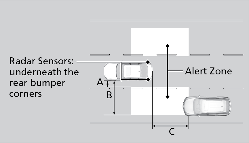 Alerts you to a detected vehicle in your left or right blind spot while driving between
