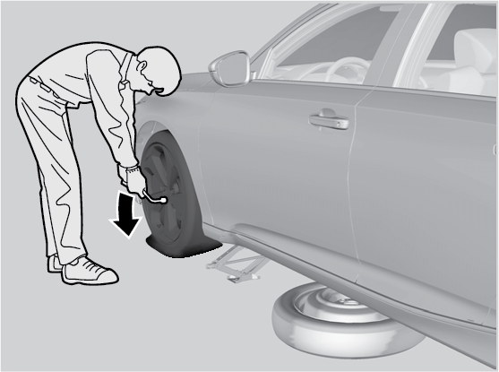 Loosen each wheel nut about one turn using the wheel nut wrench.
