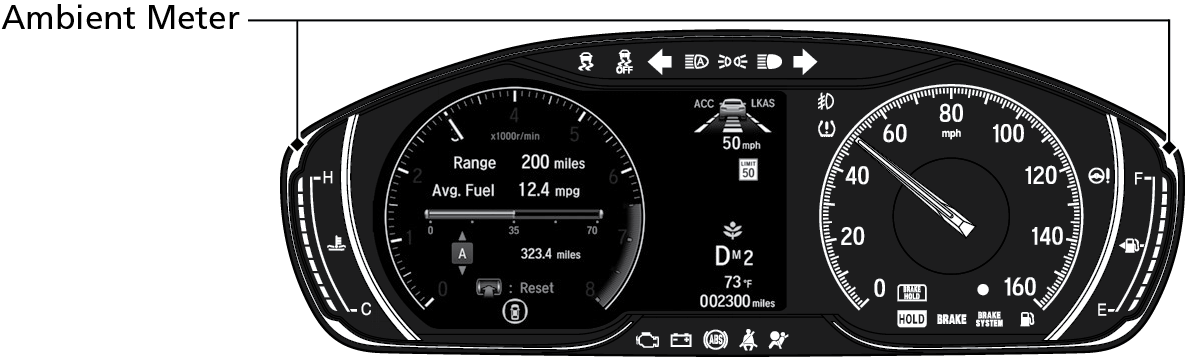Color-coded bars around the speedometer change based on your driving style and brake or accelerator pedal operation.