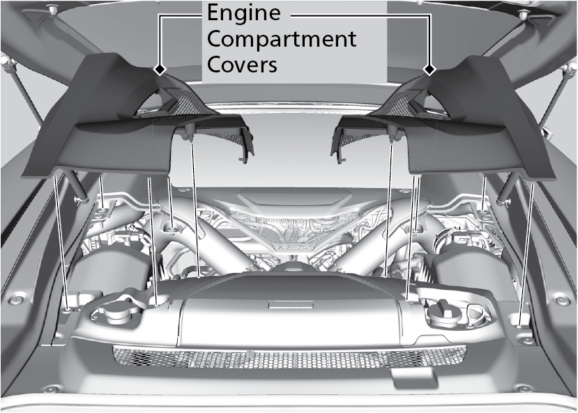 The component parts in the engine compartment are protected by a cover. You may need to remove the cover when you perform certain maintenance work.