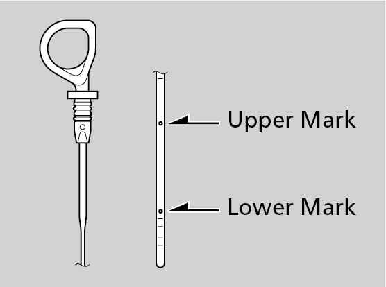 - Remove the dipstick again, and check the level. It should be between the upper and lower marks.