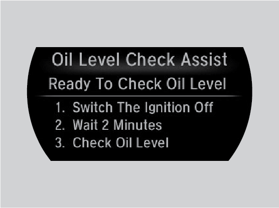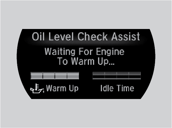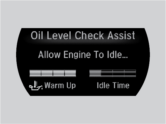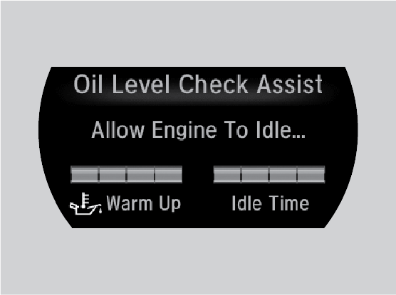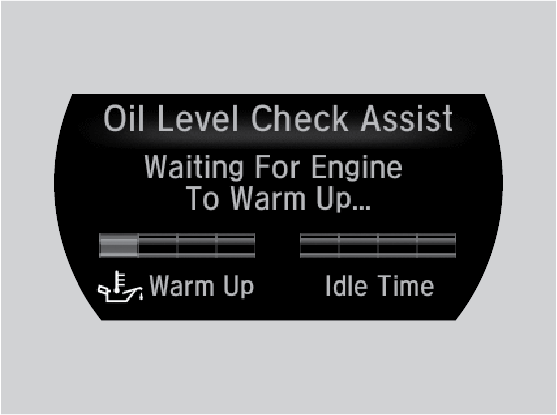 Oil Level Check Assist display light up. Do not depress the accelerator pedal while the engine is idling, as this will reset the