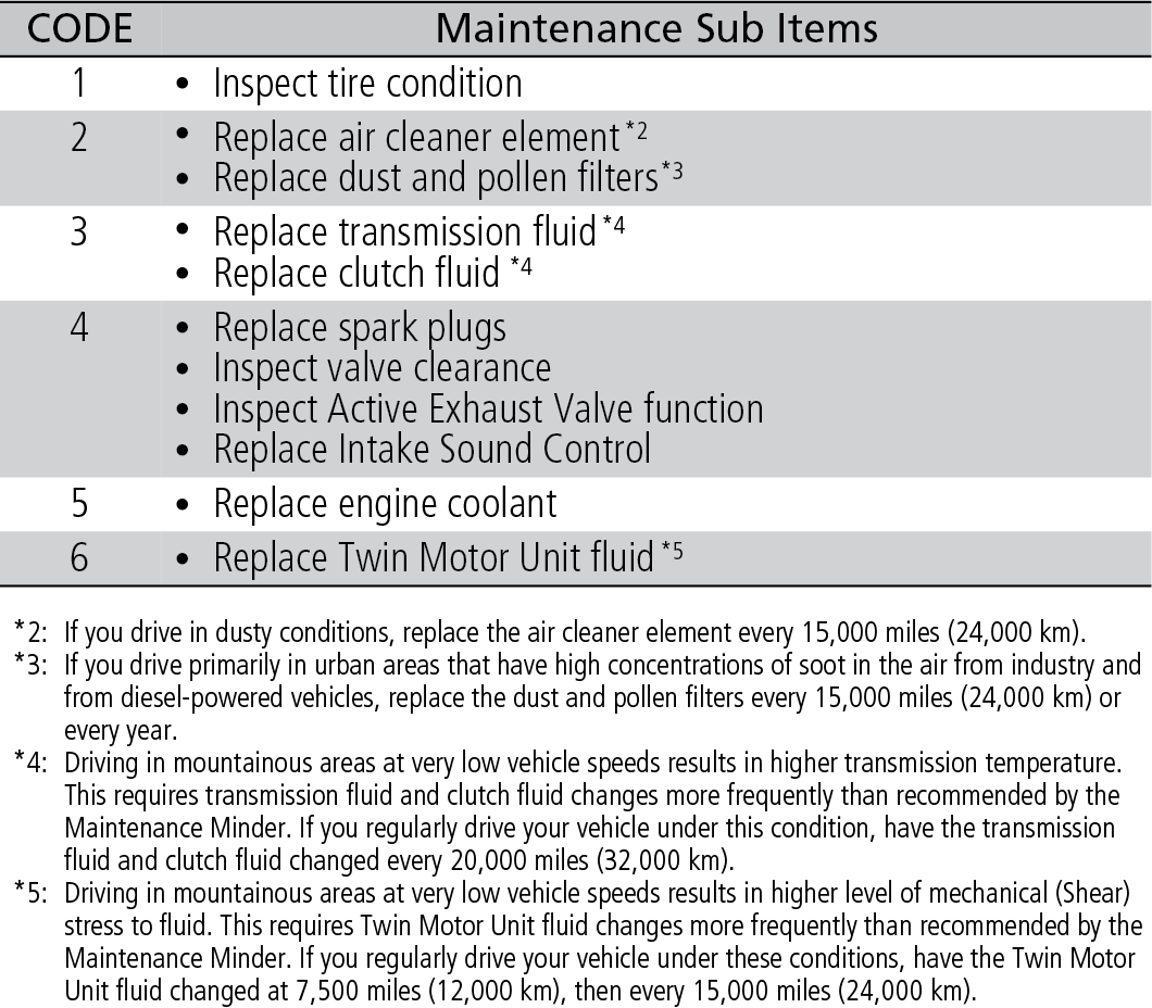 Maintenance Minder Service Codes