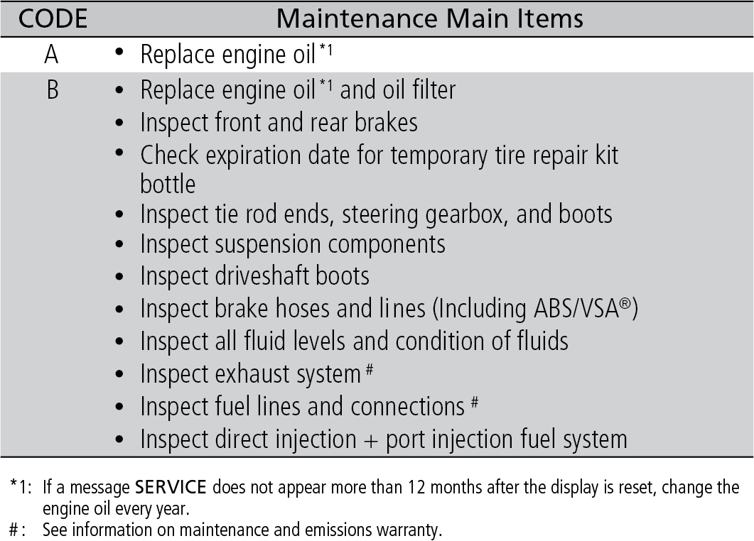 These codes indicate what services are due on your vehicle.