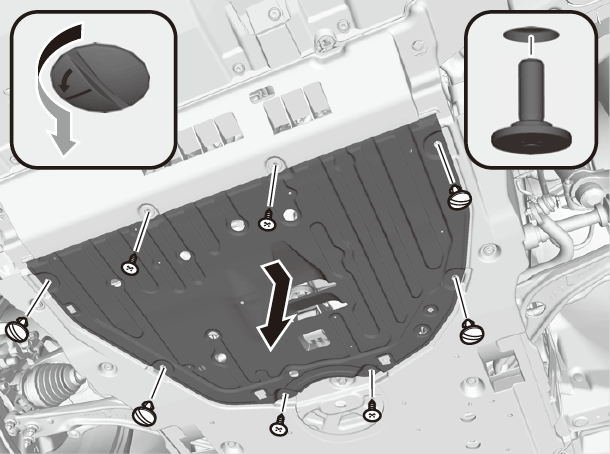 - Remove the Phillips-head screws and slotted head screws by turning 90° counter-clockwise on the undercarriage and remove the under cover.