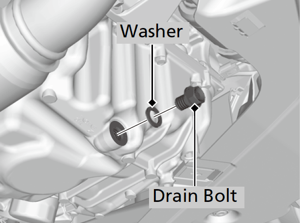 - Put a new washer on the drain bolt, then reinstall the drain bolt.