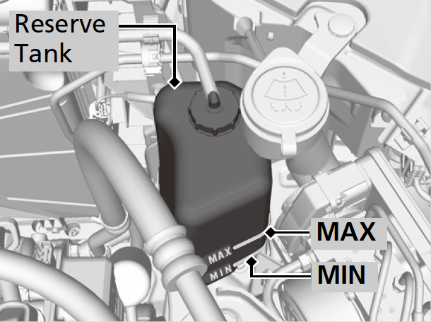 - If the coolant level is below the MIN mark, add the specified coolant until it reaches the MAX mark.