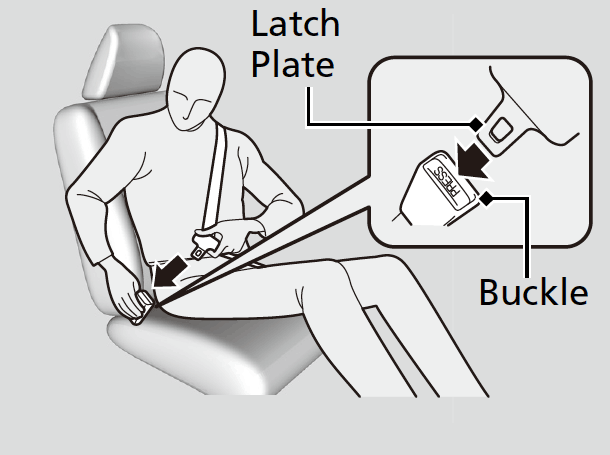 - Insert the latch plate into the buckle, then tug on the belt to make sure the buckle is secure.