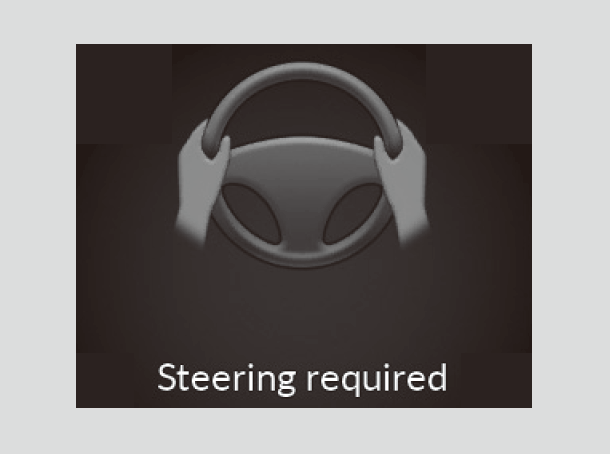 If the driver takes their hands off the steering wheel or does not adequately maintain control of steering, the warning below will appear.