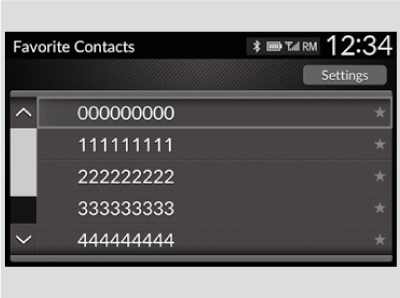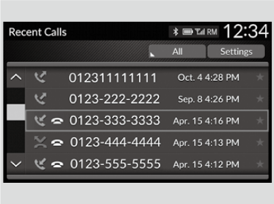 The call history appears only when a phone is connected to HFL, and displays the last 20 dialed, received, or missed calls.